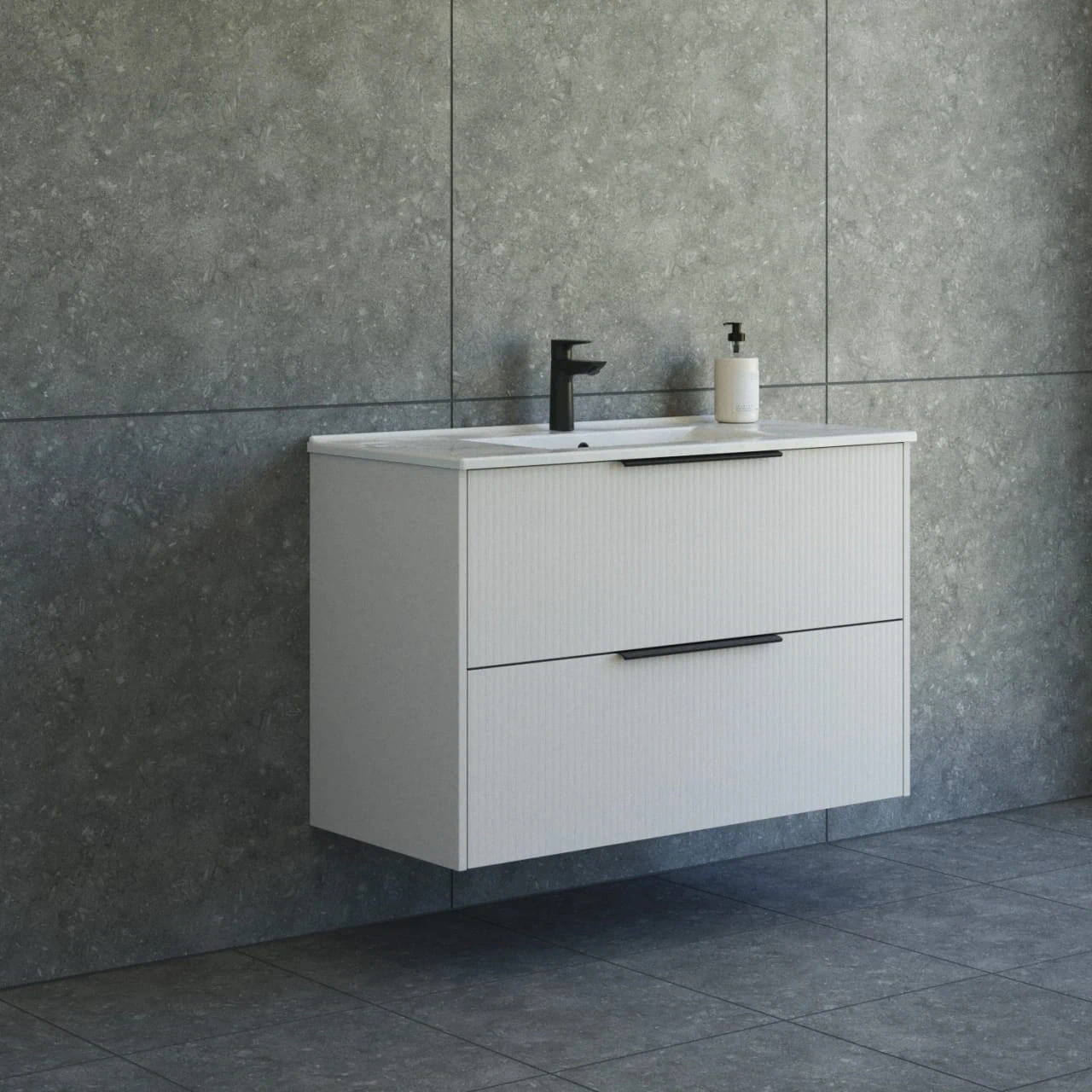 ארון פורניר\ אפוקסי, עץ סנדוויץ', חזית MDF ירוק מותאם לחדרי אמבט ולתנאי לחות.