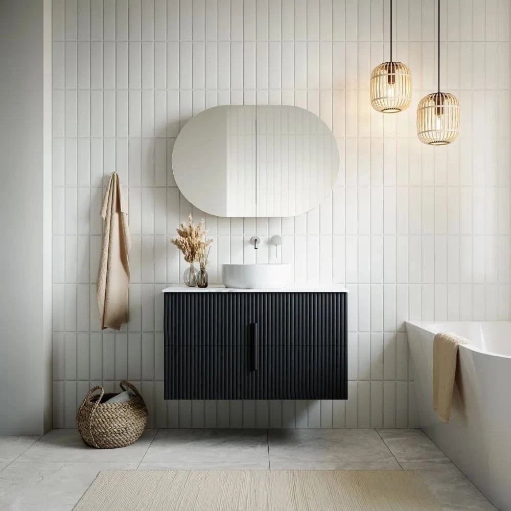 ארון פורניר\ אפוקסי, עץ סנדוויץ', חזית MDF ירוק מותאם לחדרי אמבט ולתנאי לחות.