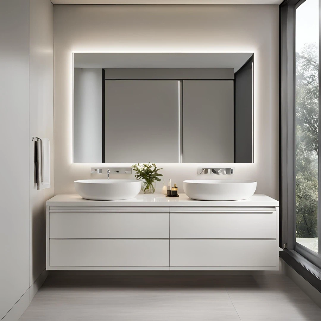 ארון פורניר\ אפוקסי, עץ סנדוויץ', חזית MDF ירוק מותאם לחדרי אמבט ולתנאי לחות.