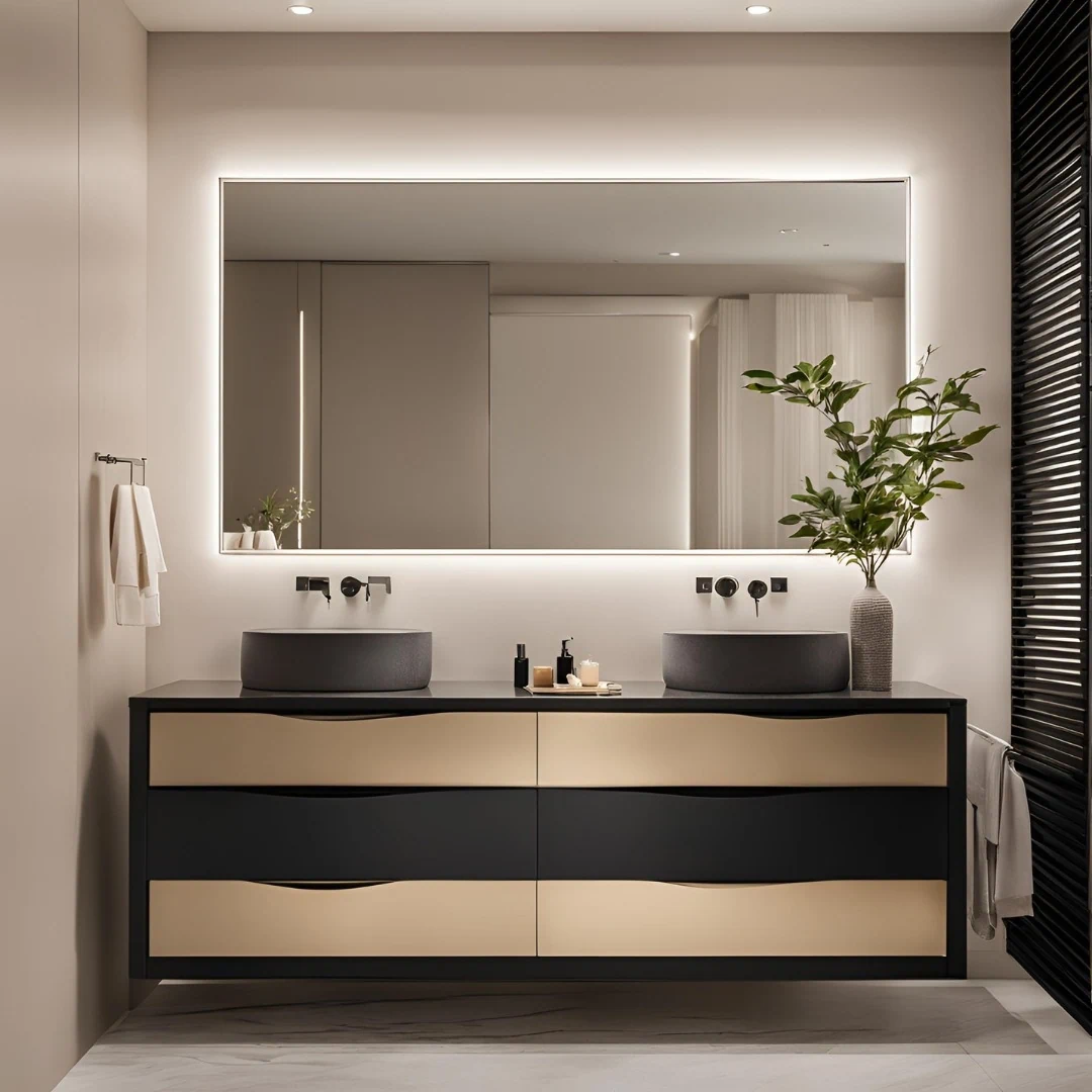 ארון פורניר\ אפוקסי, עץ סנדוויץ', חזית MDF ירוק מותאם לחדרי אמבט ולתנאי לחות.