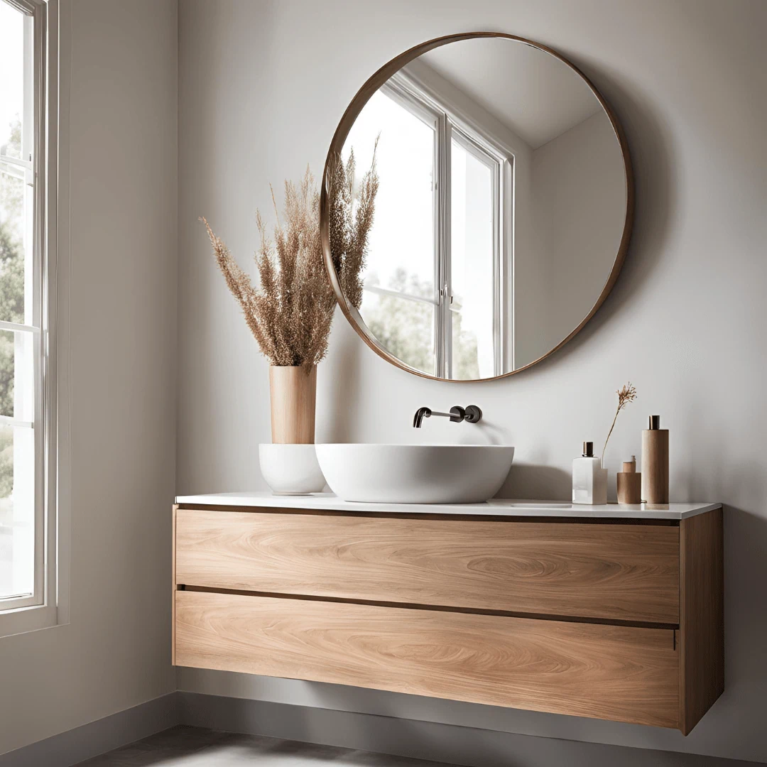 ארון פורניר\ אפוקסי, עץ סנדוויץ', חזית MDF ירוק מותאם לחדרי אמבט ולתנאי לחות.