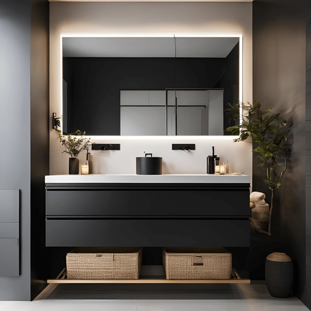 ארון פורניר\ אפוקסי, עץ סנדוויץ', חזית MDF ירוק מותאם לחדרי אמבט ולתנאי לחות.