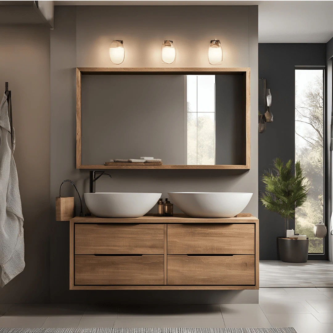 ארון פורניר\ אפוקסי, עץ סנדוויץ', חזית MDF ירוק מותאם לחדרי אמבט ולתנאי לחות.