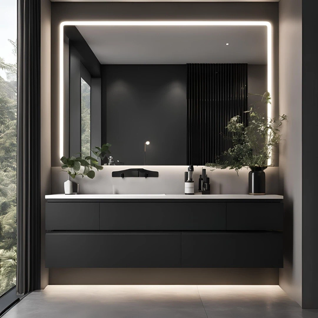 ארון פורניר\ אפוקסי, עץ סנדוויץ', חזית MDF ירוק מותאם לחדרי אמבט ולתנאי לחות.